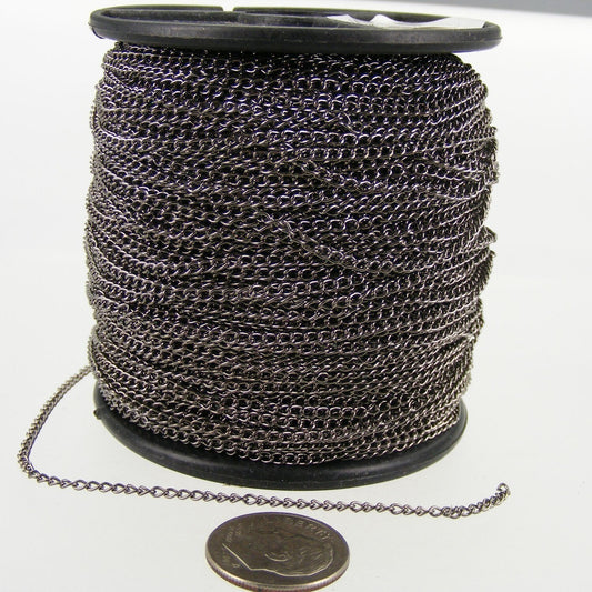 100 ft of Gunmetal Finished Curb Chain - 3.0mm 0.8mm Unsoldered Link - 30CURB