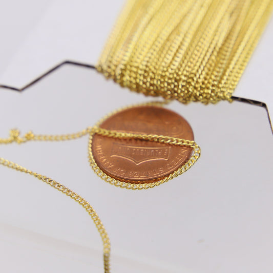 10 Ft Non TARNISH Curb Chain - 18K Gold Plated Micro Tiny Small Curb Chain - 1.3mm SOLDER - Anti Tarnish Free Resistant Chain - AT1.3S