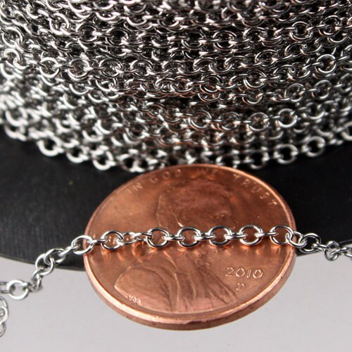 Stainless Steel chain bulk, 10 ft of Surgical Stainless Steel Sturdy Cable chain - 4.2x3.4mm 0.8mm Unsoldered Link