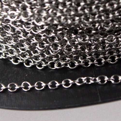 Stainless Steel chain bulk, 30 ft of Surgical Stainless Steel Medium Soldered Sturdy cable chain - 2x2.5mm 1.95mm width SOLDERED Link