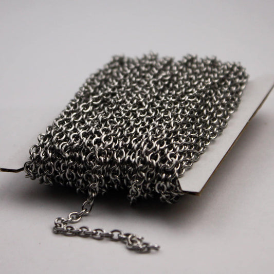 30 Ft Stainless Steel chain Surgical Sturdy Cable chain - 4.2x3.4mm 0.8mm Unsoldered Link bulk chain