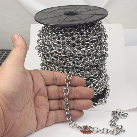 Stainless Steel chain bulk, 30 ft of Surgical Stainless Steel Sturdy Chunky Big Heavy Cable chain - 10.2x8.4mm 2mm 12G Unsoldered Link -
