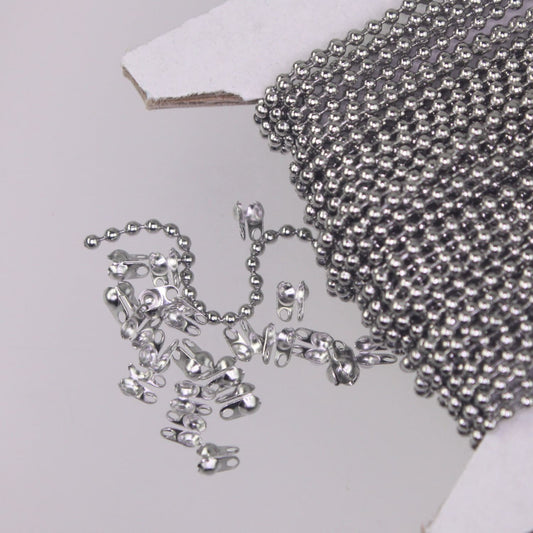 100 feet Stainless Steel BALL Chain - 2.4mm ball size with FREE 100 pcs of Connector (Crimp ) - STBall2.4