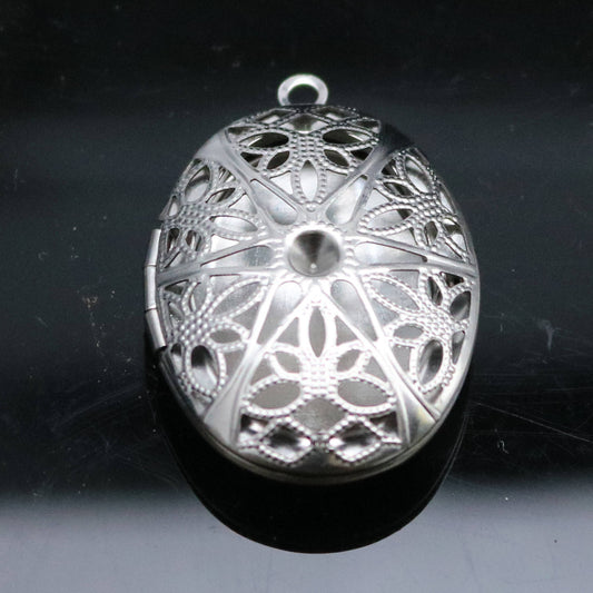 1/5/10/25 pcs STAINLESS STEEL Filigree Big Oval Round Circle Locket Pendant Charm - 26x39mm 10mm thickness - Ship from California USA