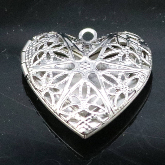 1/5/10/25 pcs STAINLESS STEEL Filigree Heart Locket Pendant Charm - 26x26mm 1 inch 7mm thickness - Pendant Charm - Ship from California USA