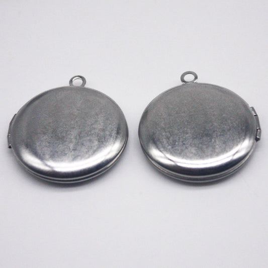 1/5/10/25 pcs STAINLESS STEEL Plain Round High Quality Locket Pendant Charm - 27x31mm 7mm thickness - Ship from California USA