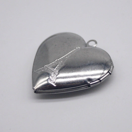 1/5/10/25 pcs STAINLESS STEEL "Eiffel Tower" & "TE_AMO" Heart Locket Pendant Charm - 29x29mm 6.8mm thickness - Pendant Charm