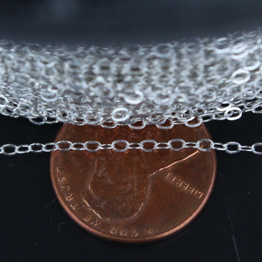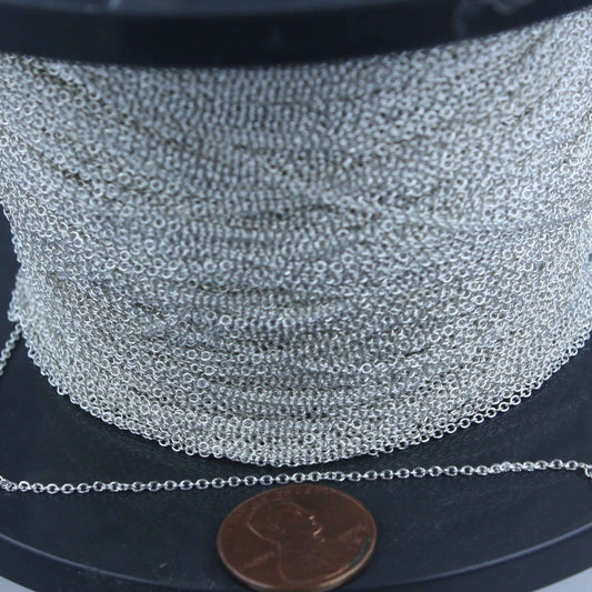 925 SOLID Sterling Silver Chain Bulk, 100 ft. of 925 Sterling Silver Little Tiny Flat Round Cable Chain - 1.6x1.25mm - SS16125