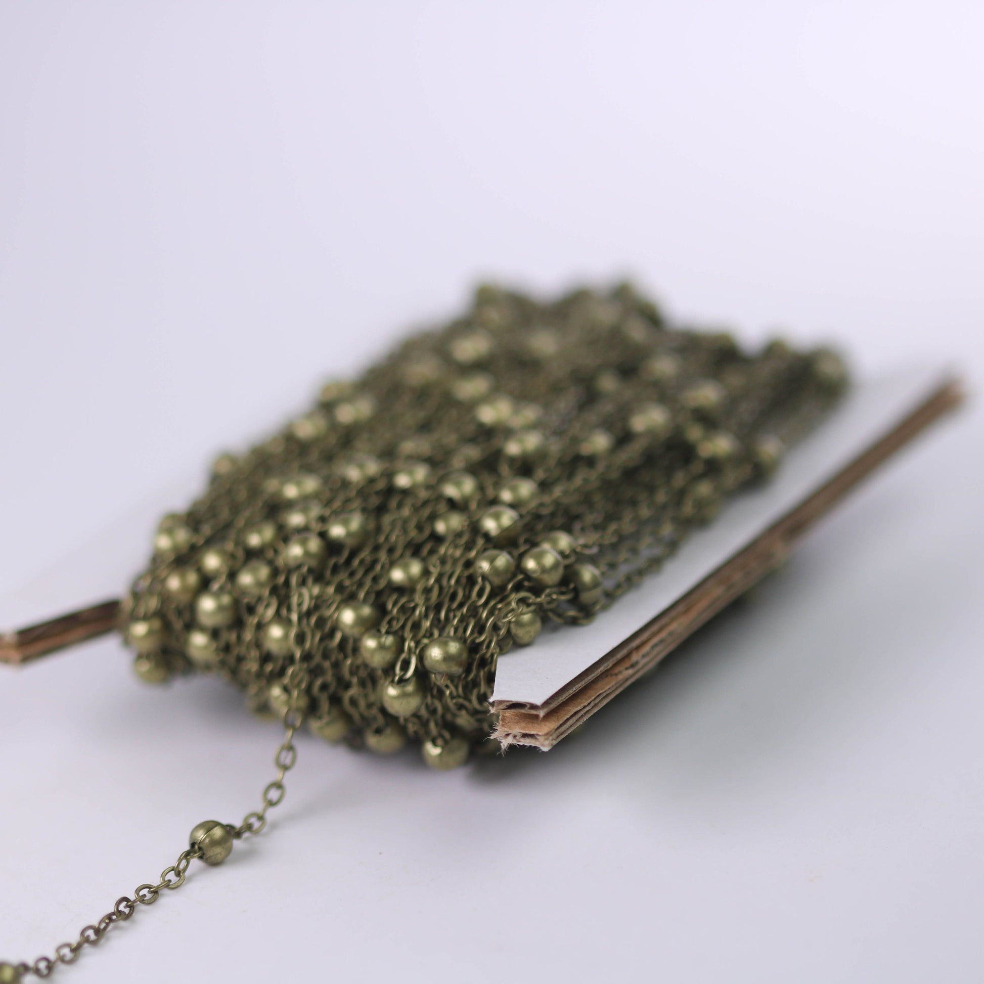 New 10 feet of Antique Brass Satellite LARGE Ball Bead Solder Cable Chain - 3x1.7mm Link - 4mm Ball Bead - Satellite Solder Cable - from USA