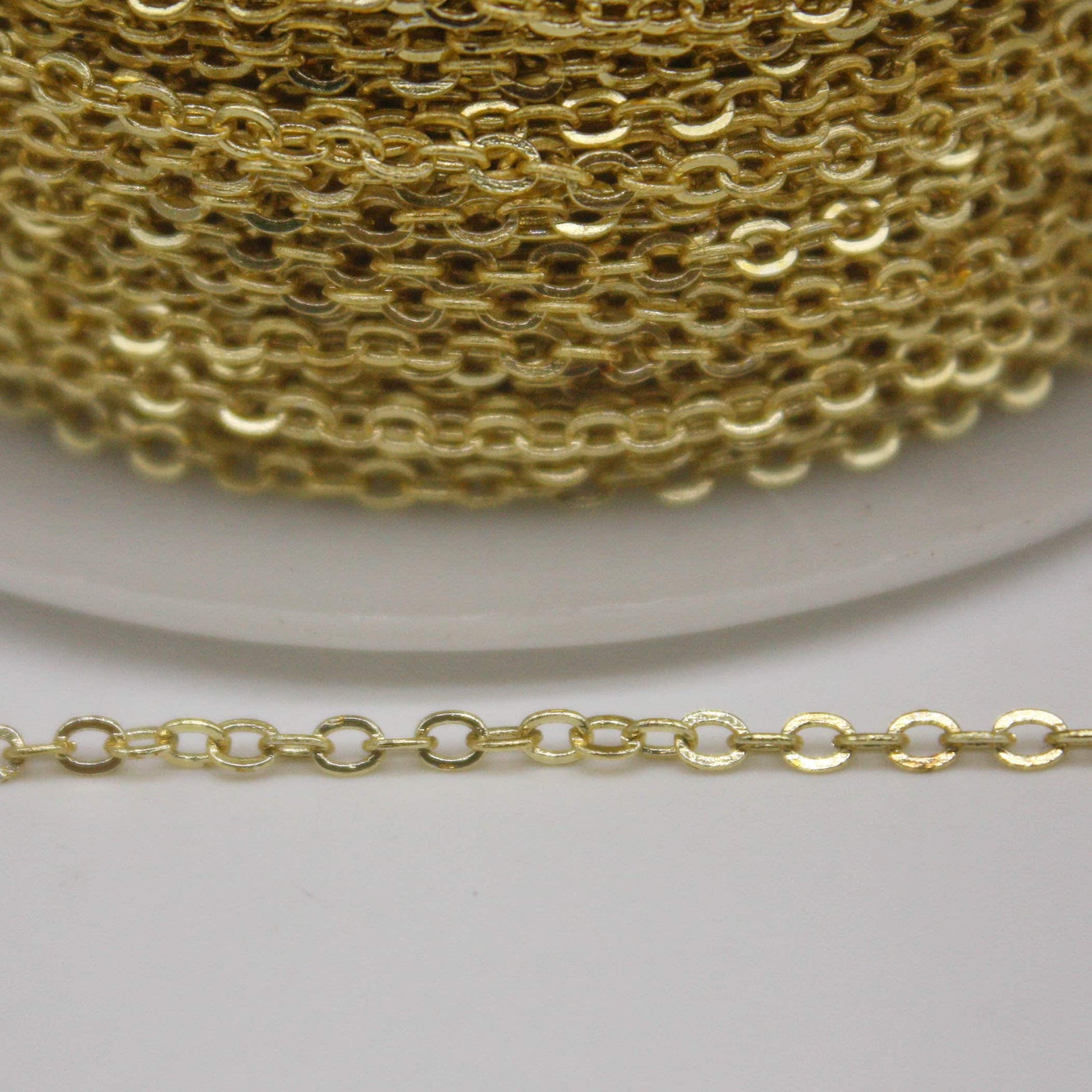 NEWnew 10 feet TARNISH Resistant Tarnish Free Anti Tarnished 18K Gold Flat Chain - 3x1.7mm SOLDER - Soldered Cable