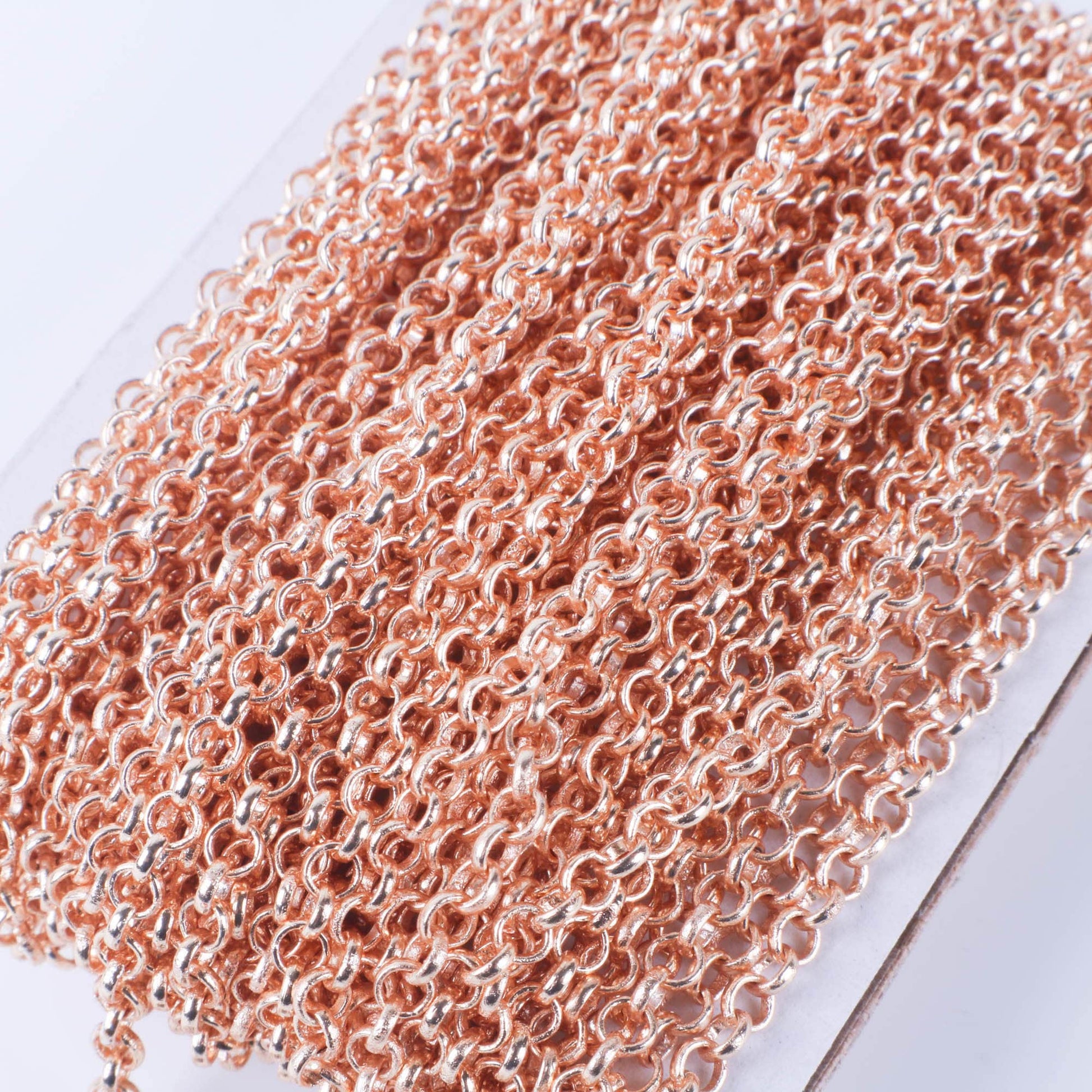 10 feet TARNISH Resistant Tarnish FREE Anti Tarnished Champagne Gold (Pinky Gold) Plated Rolo Chain bulk - 3.2mm SOLDERED Link AT3.2BL
