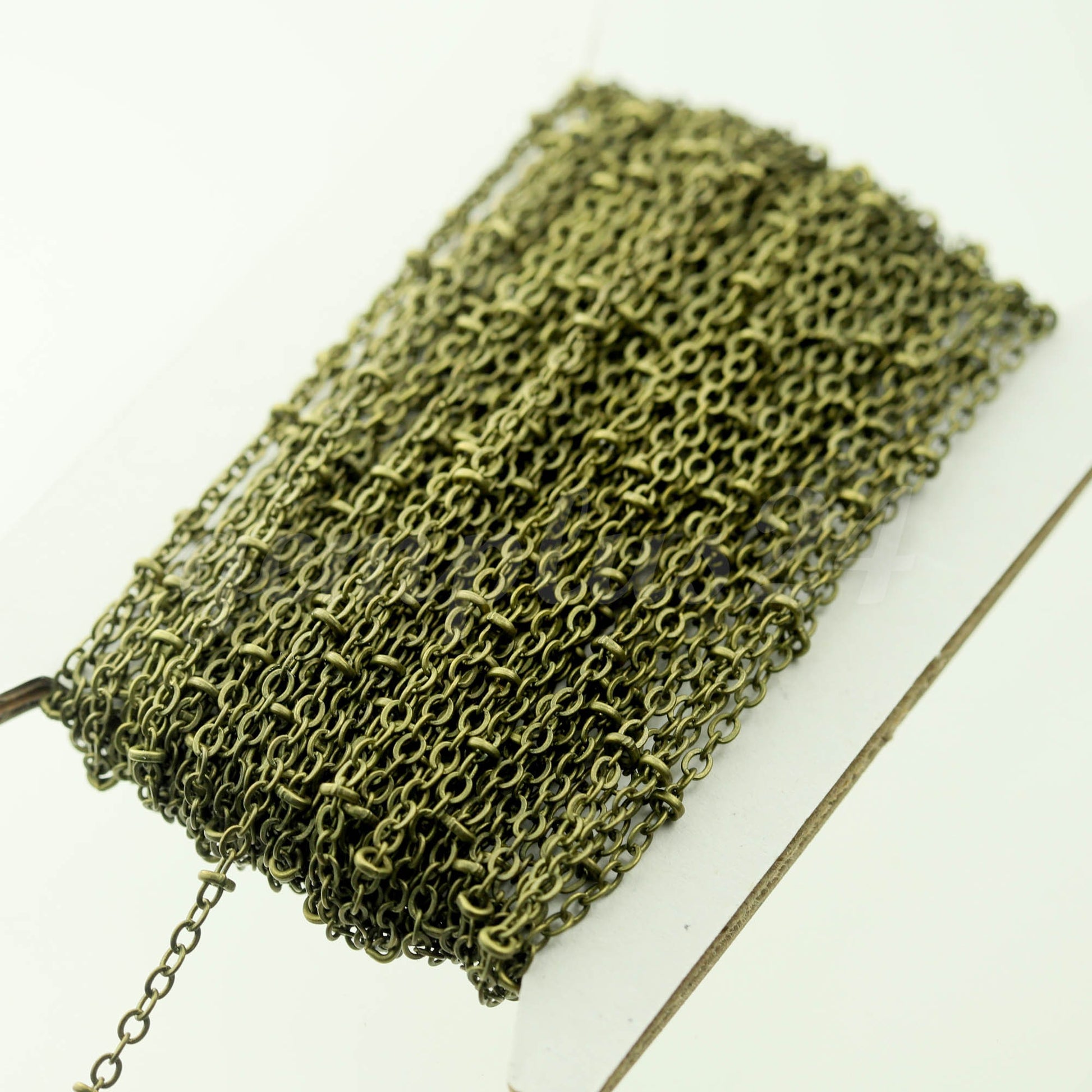 10 ft spool of Antique Brass Finished over brass Flat tiny BALL Chain - 3x1.7mm SOLDERED link