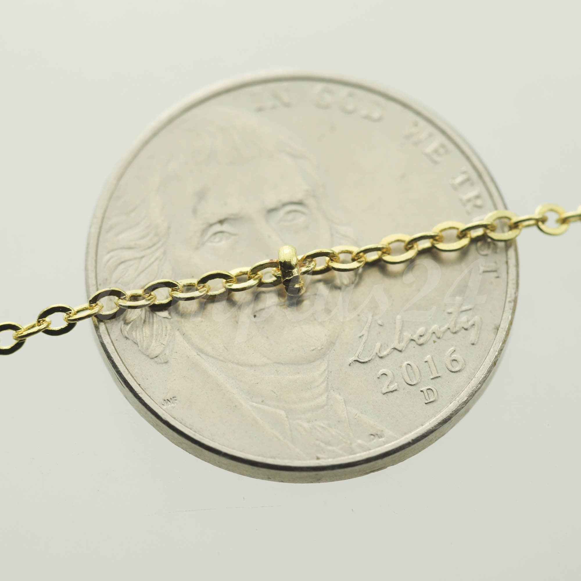 10 ft Pinky Gold (Champagne Gold) Plated Satellite Chain Flat BALL Chain - 2.4x1.7mm SOLDERED link - Dainty Chain - Wholesale - 2417FSAT