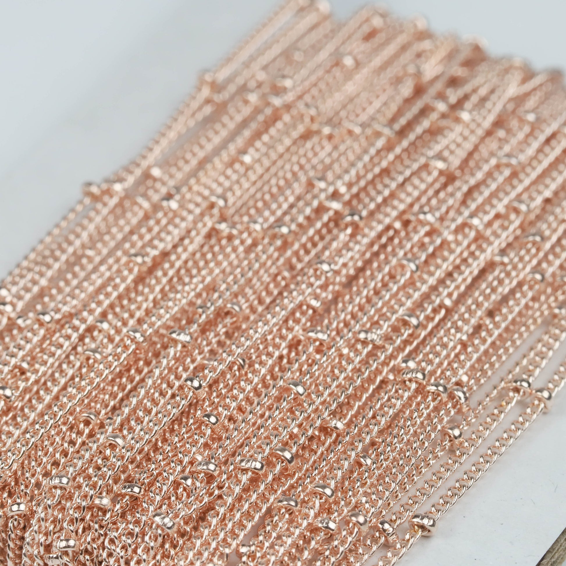 10 Ft Rose Gold Satellite Chain Bulk - Tiny Cable BALL Bead Chain - 1.3mm Curb SOLDERED Necklace Chain