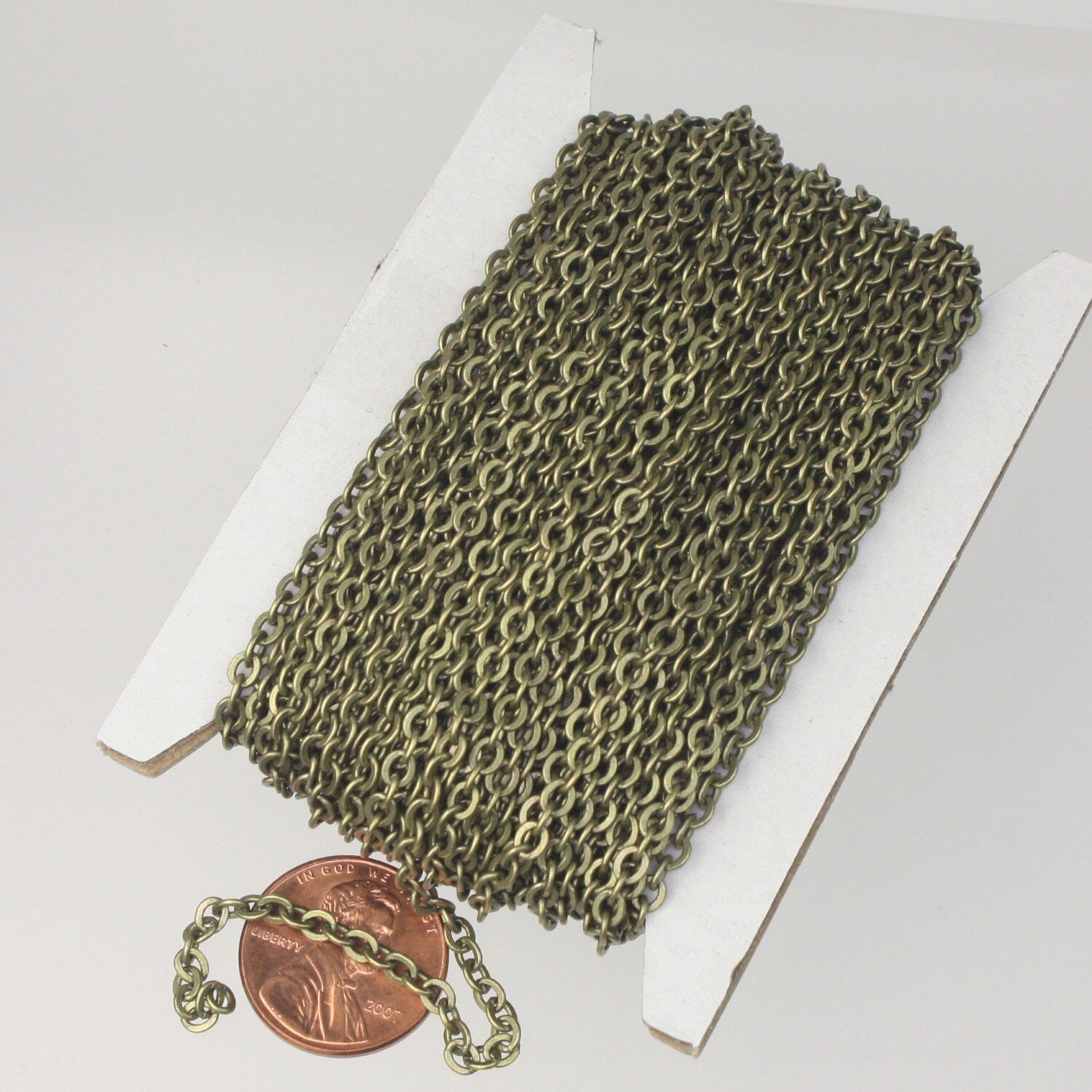 10 ft spool of Antique Brass Flat ROUND Soldered Cable Chain - 3.4x3.4mm Thick Sturdy SOLDERED Link - 3434F
