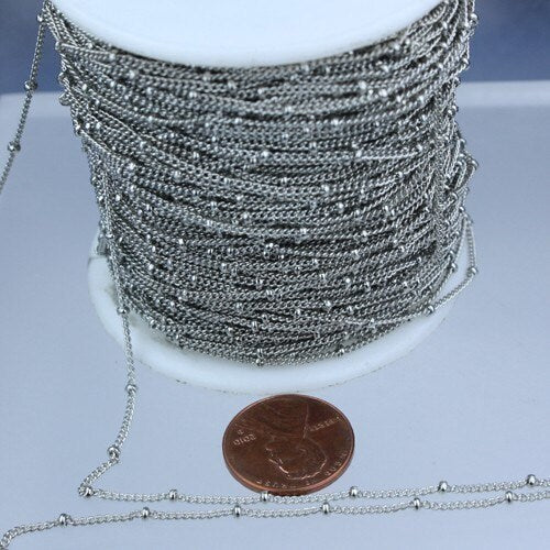 10 ft spool of Antique Silver Finished Rhodium Plated SATELLITE Dainty Delicate curb BALL chain - 1.3mm soldered link - 1.3SAT
