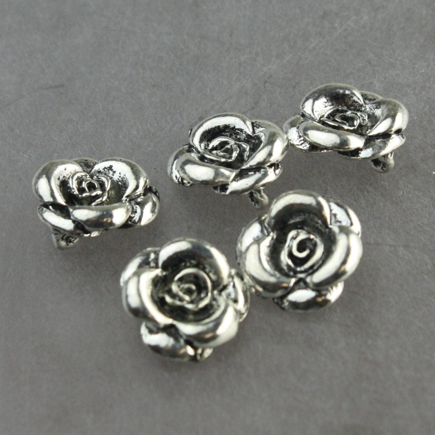 10 pcs of Antique Silver Rosebud Charms Rose Charms Rose Bud Flower Charms Pewter Silver Charms 13.5mm