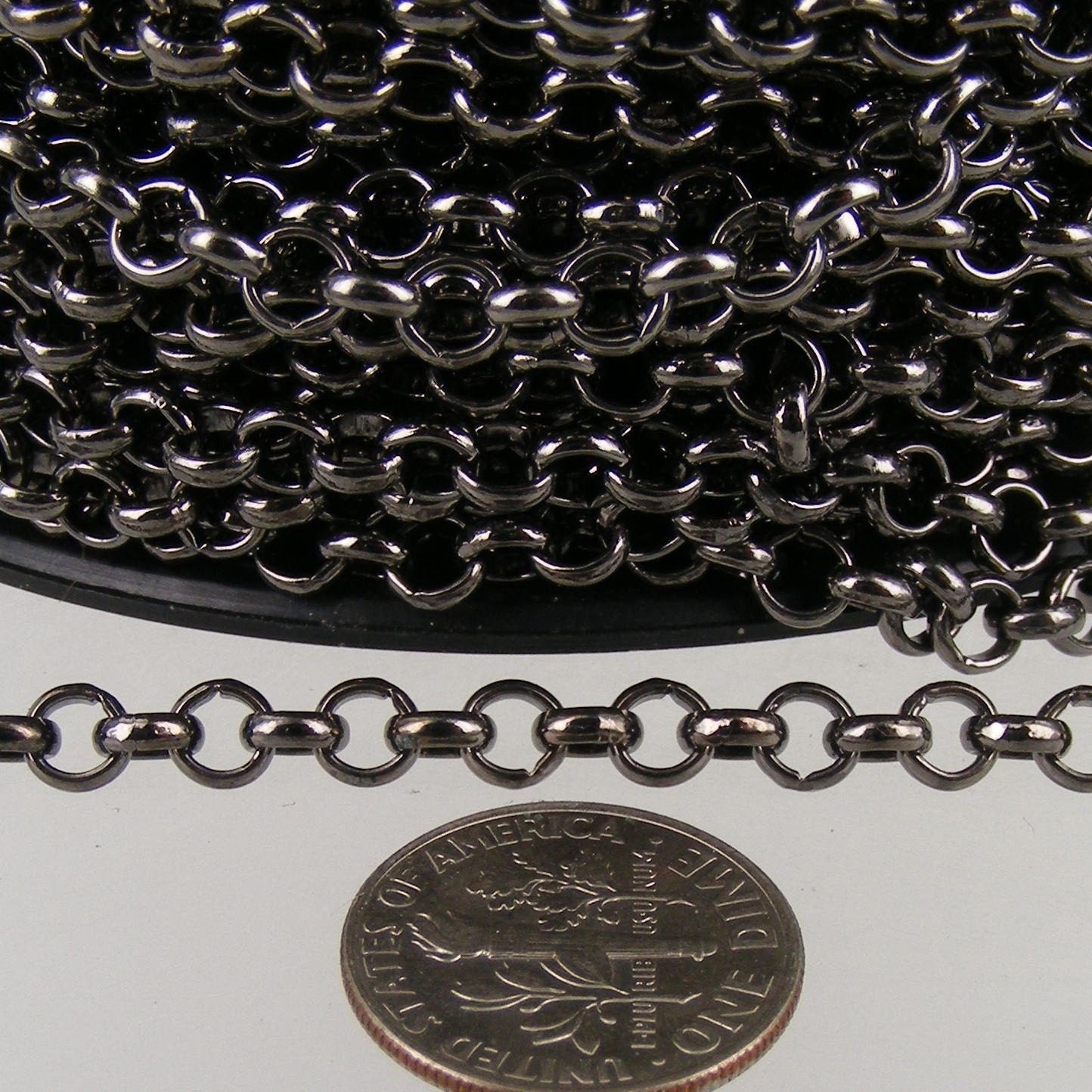 100 feet of Gunmetal Rolo Rollo Chain bulk, - 4.7mm - Unsoldered Links - Necklace Bracelet Wholesale Bulk Jewelry Chain - 47ROLO