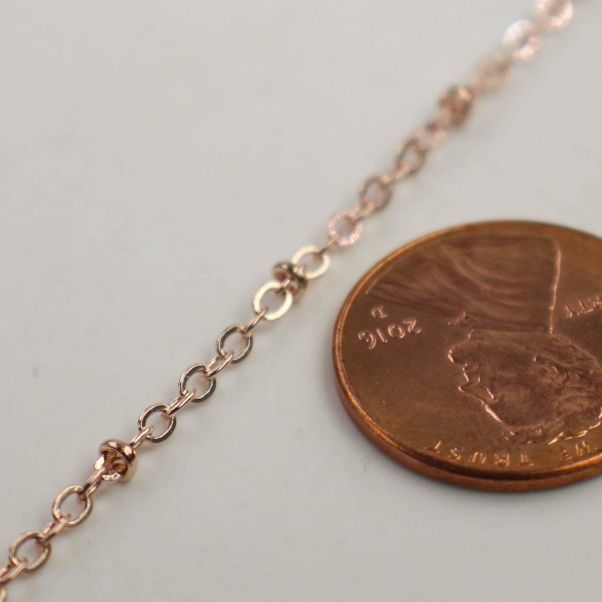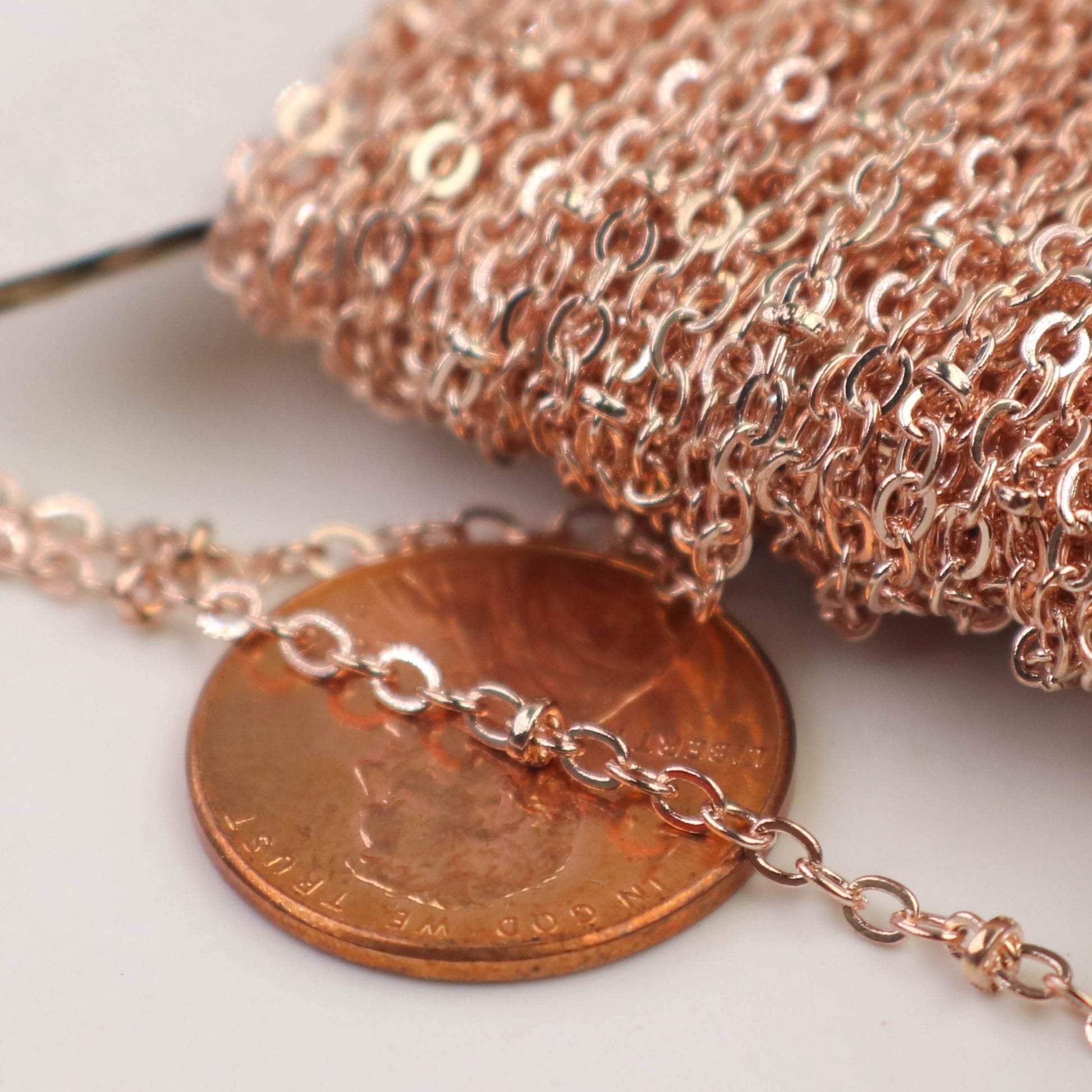 100 feet ROSE Gold Plated Satellite Chain Flat BALL Chain - 3x1.7mm SOLDERED link - Tiny Small Ball Flat Cable Chain - Bulk - 317FSAT