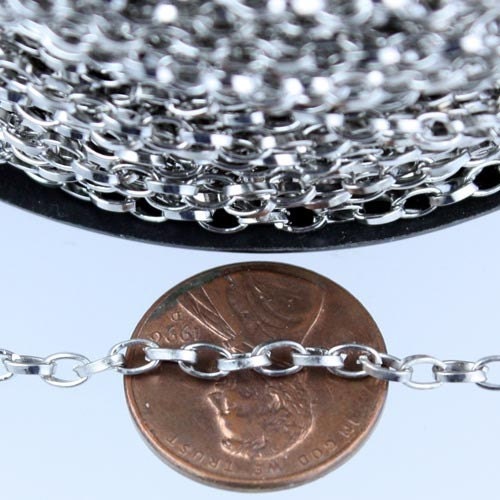 100 ft. Antique Silver finished Small Drawn oval Cable chain - 3.9x2.5mm unsoldered link
