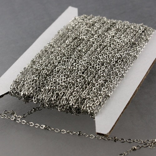 100 ft Antique Silver Satellite Chain Flat BALL Chain - 2.4x1.7mm SOLDERED link - Rhodium Tiny Small Ball Flat Cable Chain - 2417FSAT