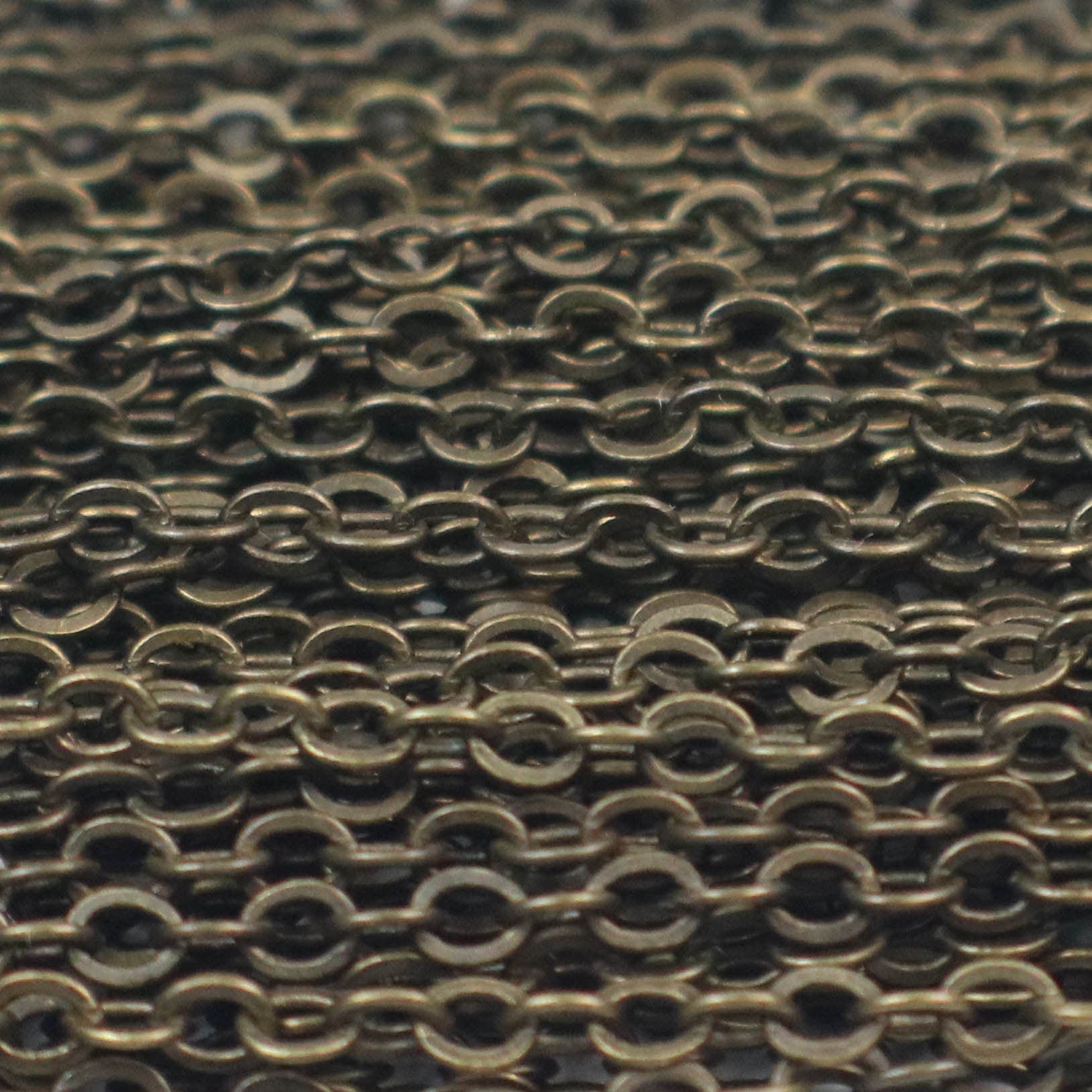 100 ft DARK Antique Brass Flat Cable Chain - 3.4x2.9mm SOLDERED Link - Antique Bronze Bulk Flat Cable Chain - ship from California USA