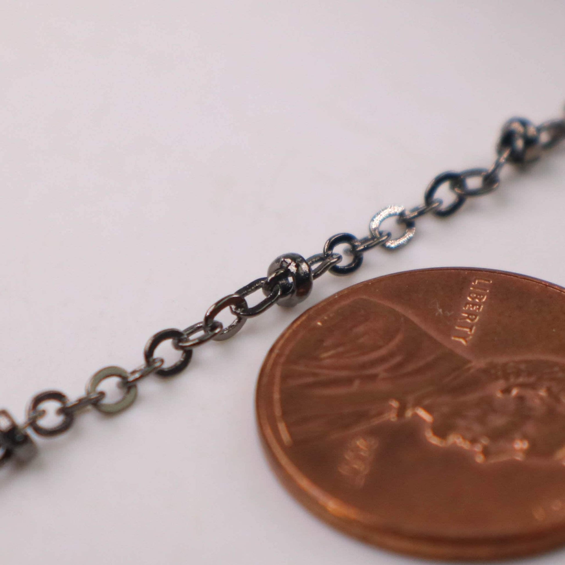 100 ft Gunmetal Satellite Chain Flat BALL Chain - 3x1.7mm SOLDERED link - Tiny Small Ball Flat Cable Chain - Bulk Dainty Delicate - 317FSAT