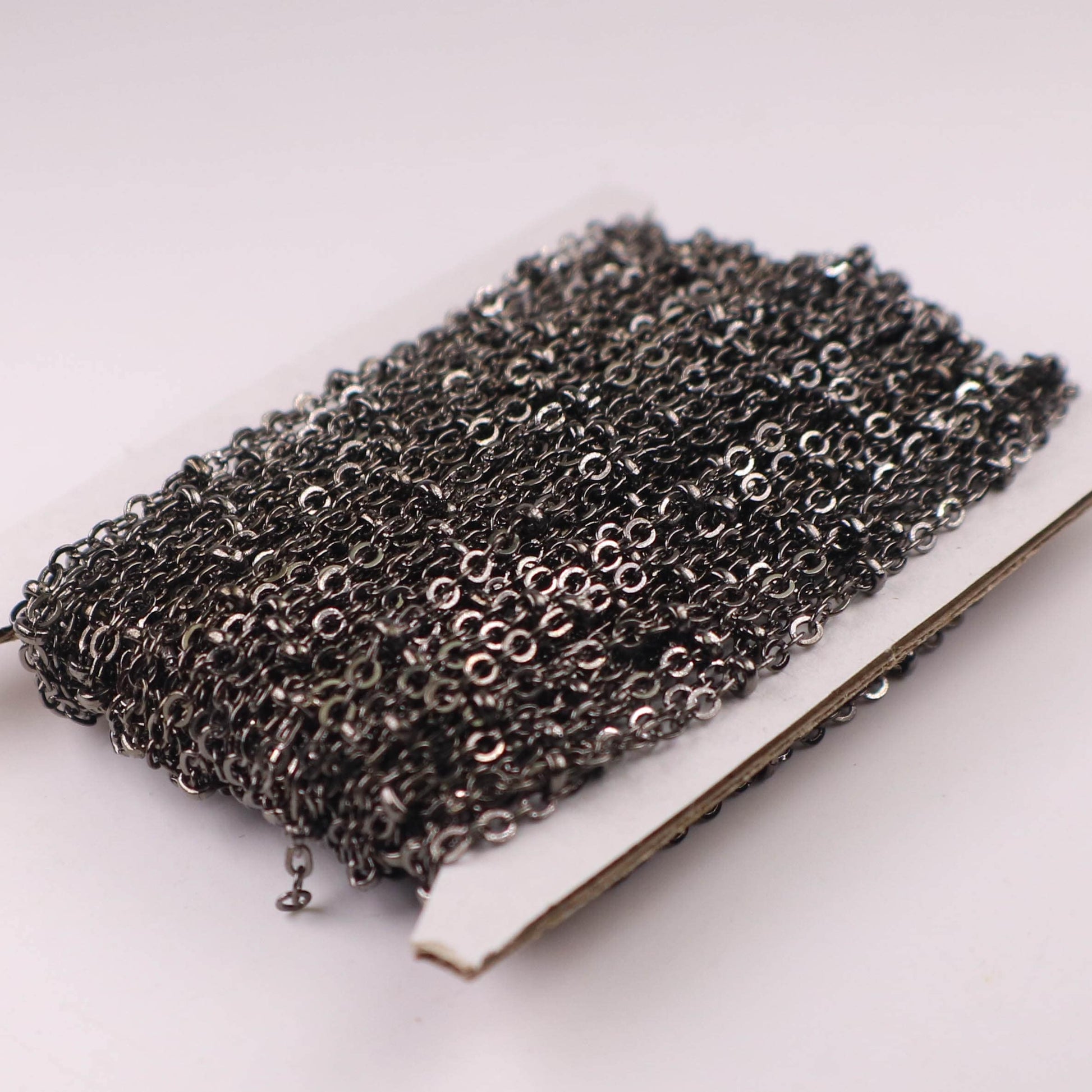 100 ft spool of Gunmetal Finished over brass Flat tiny BALL Chain - 3x1.7mm SOLDERED link