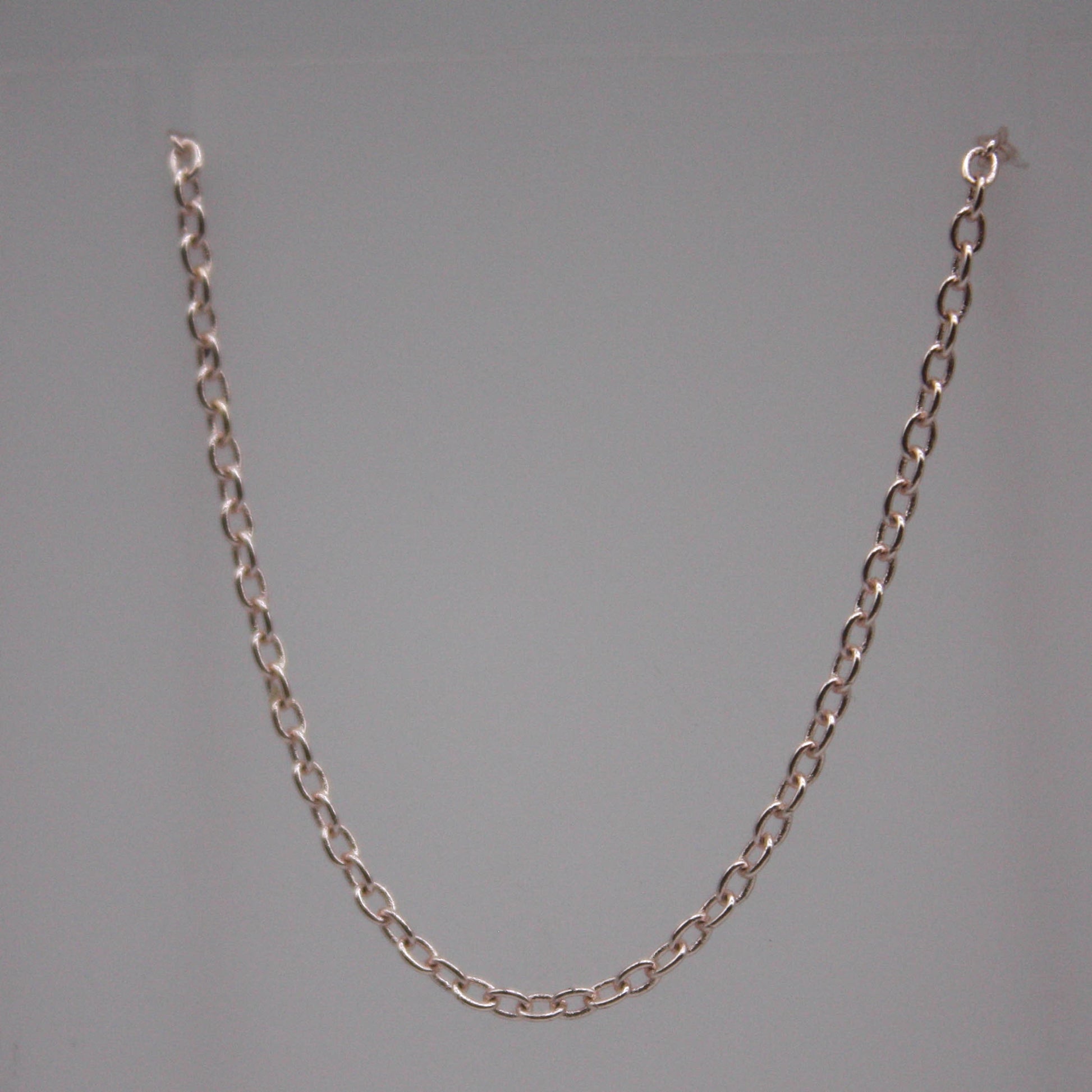 It won't tarnish. 1.4mm width and 2.0mm Length Soldered Link Small Tiny Cable Chain. Anti Tarnish/non tarnish/tarnish resistant Plating on Chain Surface. there are 4 different colors, 18K Gold Color/Rose Gold/Champagne Gold/Pink (Copper) Color. and there are 5 different Length of Chain 3 feet Sample to 300 feet Plastic Roll Size. Matieial is Copper Filled base on Iron Steel.