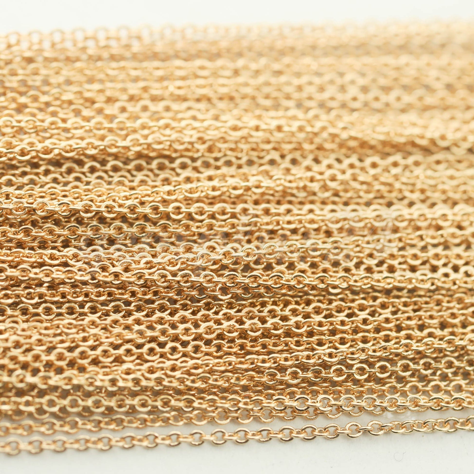 100 ft of Champagne Gold (Pinky Gold) Tiny Dainty Flat Soldered Necklace Chain - 2mm 2x1.4mm - Free Adequate Jumpring 50pcs - 214F