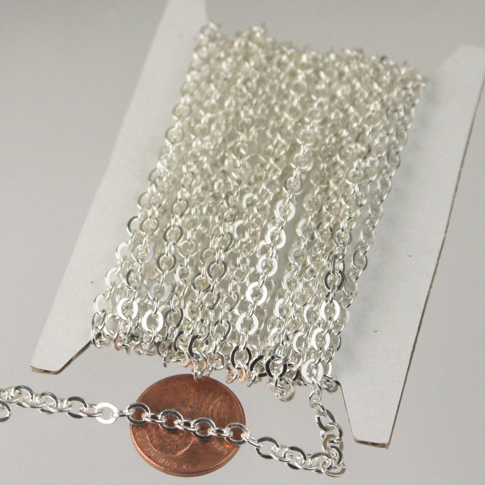 100 ft of Sterling Silver Plated Flat Cable Chain - 4X3.5mm SOLDERED link - 435F