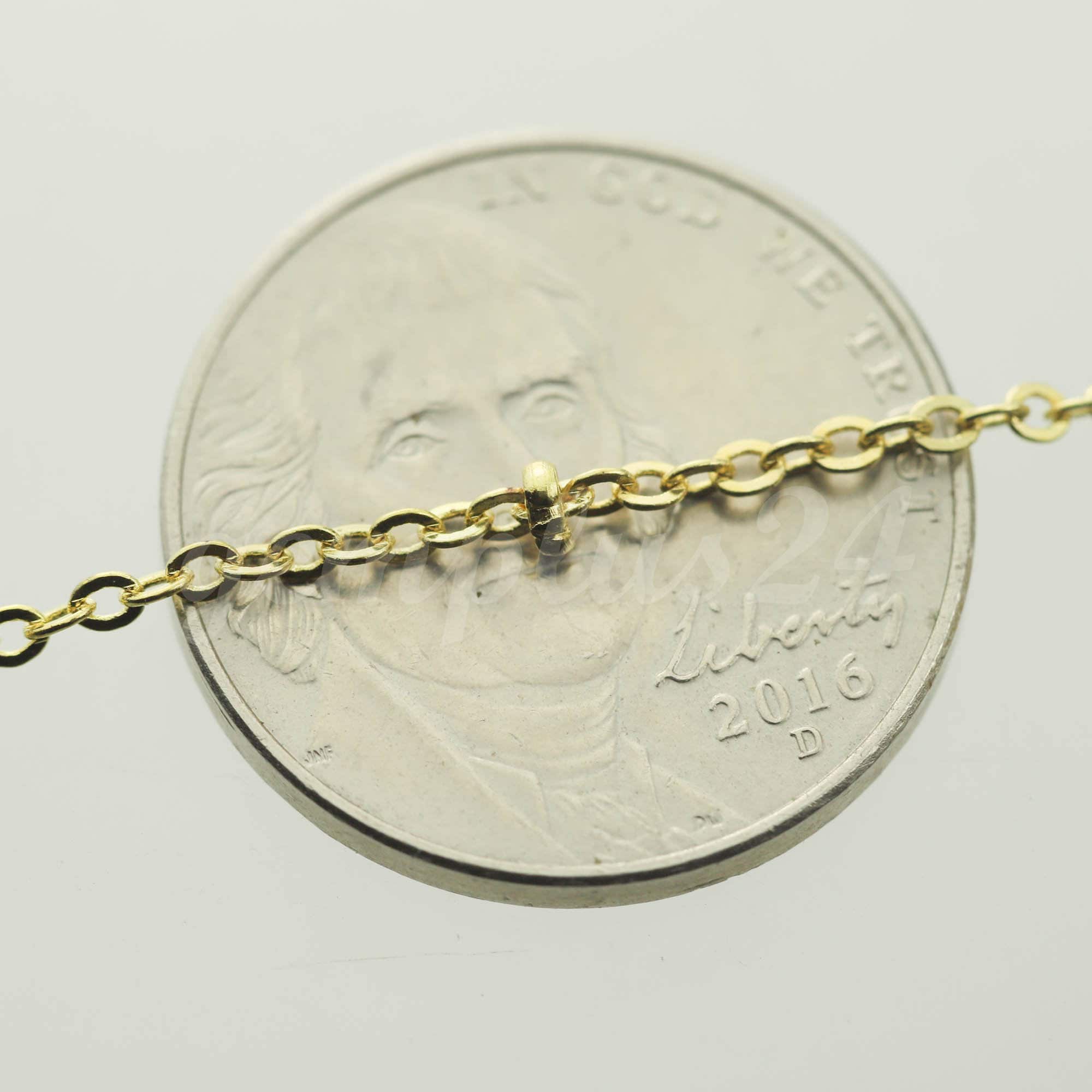100 ft Pinky Gold (Champagne Gold) Plated Satellite Chain Flat BALL Chain - 2.4x1.7mm SOLDERED link - Dainty Chain - 2417FSAT