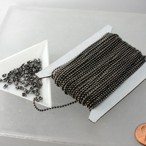100 ft spool of Gunmetal plated ball chain - 1.5mm with 100 pcs of Connectors (crimp) - ship from CA USA - 15BALL