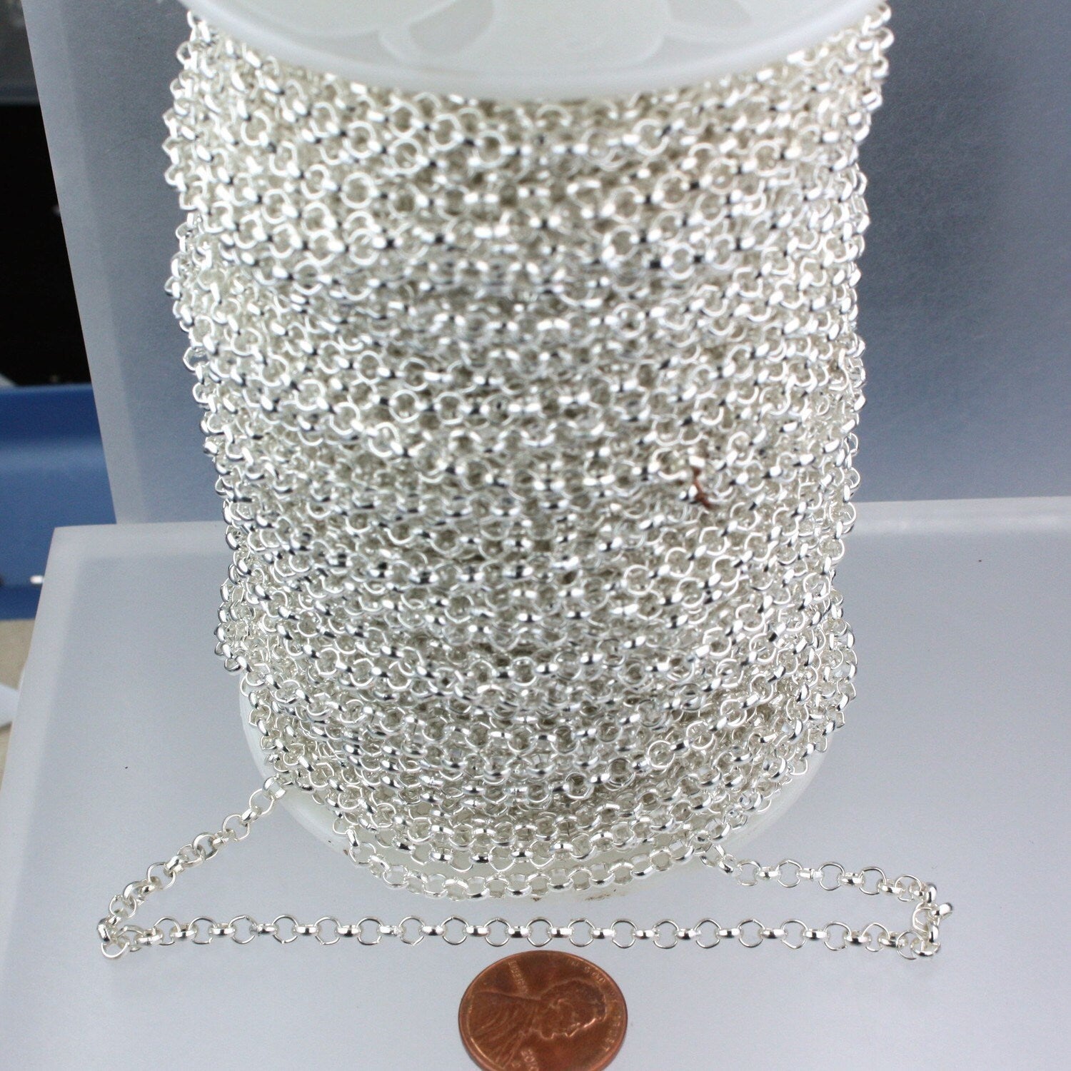12 feet Sterling Silver Plated Rolo Chain bulk, Cable Chain 3.2mm - Unsoldered Links - Necklace Bracelet Wholesale Bulk Jewerly Chain