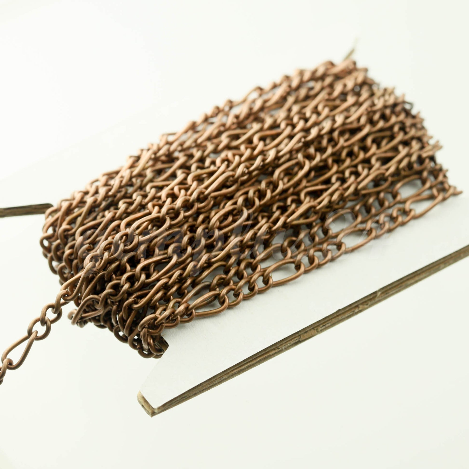 3 feet Antique Copper Plated Chunky Long and Short (3 and 1) Chain FIGARO chain 9x3mm - Necklace Bracelet - 94FIGA