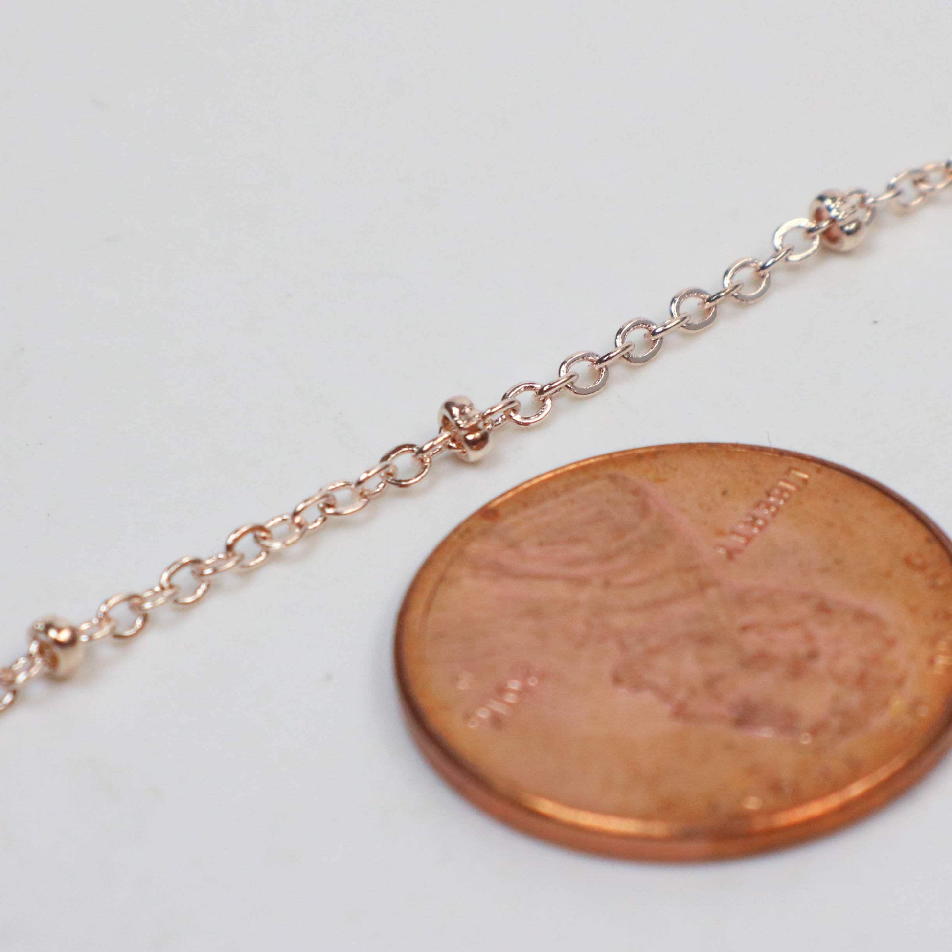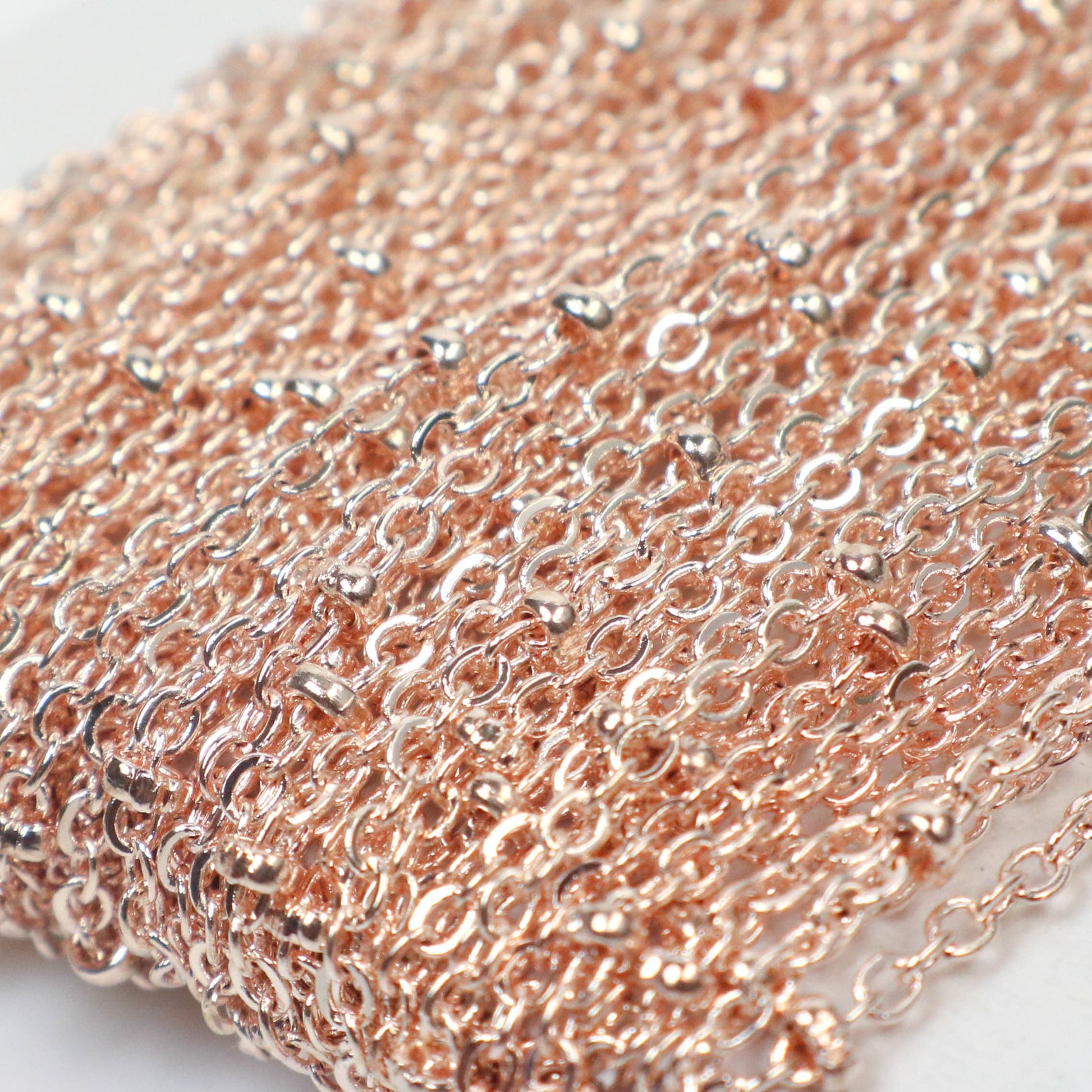 New 3 feet ROSE Gold Plated Satellite Chain Flat BALL Chain - 2.4x1.7mm SOLDERED link - Tiny Small Ball Flat Cable Chain - Bulk Wholesale