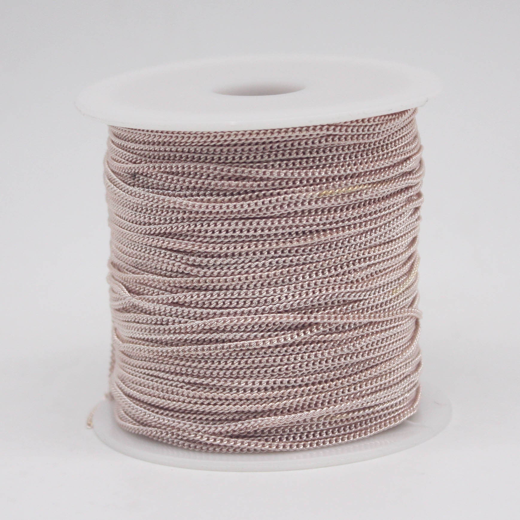 It won't tarnish. 1.3mm width Soldered Link Micro Tiny Curb Chain. Anti Tarnish/non tarnish/tarnish resistant Plating on Chain Surface. there are 4 different colors, 18K Gold Color/Rose Gold/Champagne Gold/Pink (Copper) Color. and there are 5 different Length of Chain 3 feet Sample to 300 feet Plastic Roll Size. Matieial is Copper Filled base on Iron Steel.