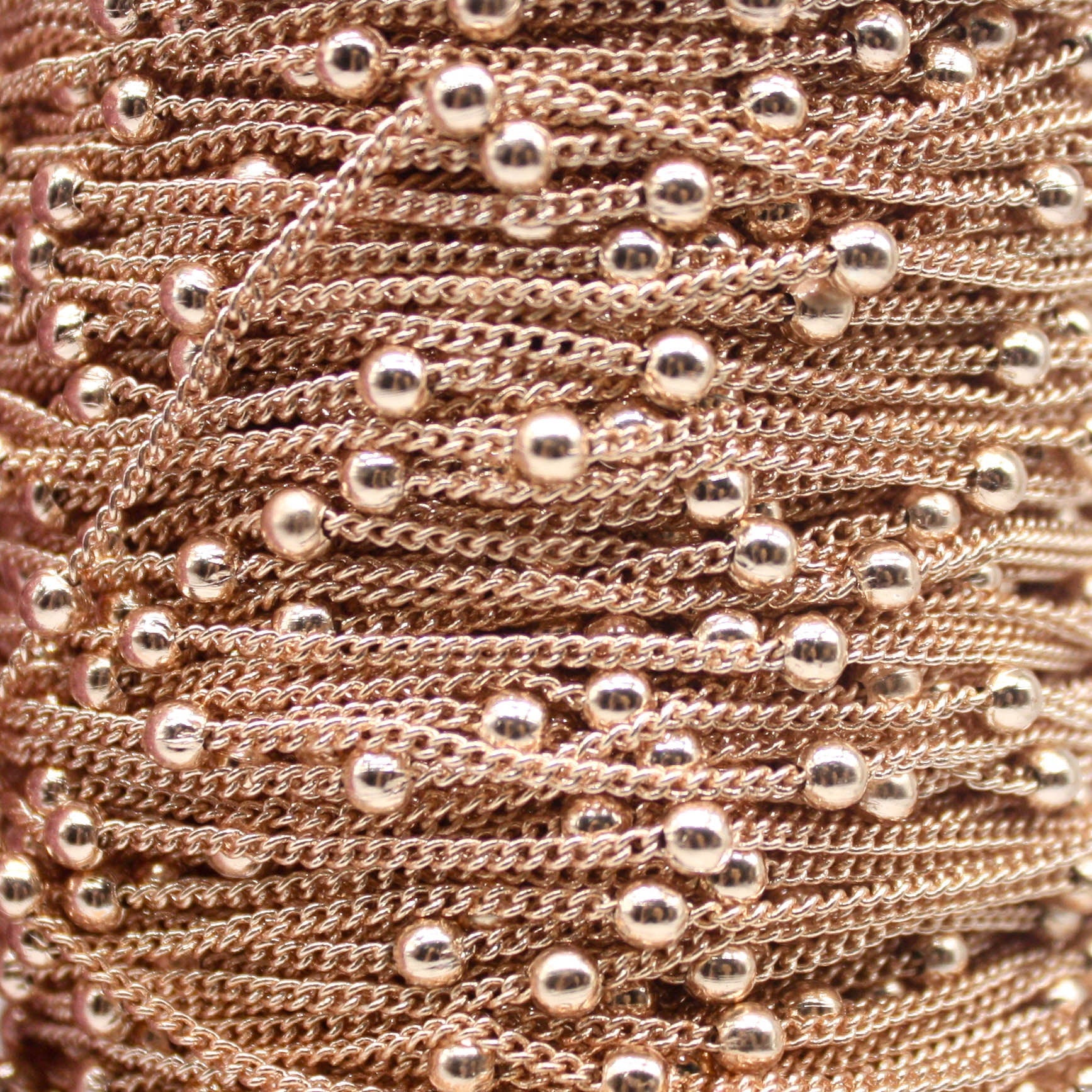 3 Ft Non Tarnish Satellite Curb Chain Champagne Gold Plated - 1.6mm Curb 3.5mm Large Beads - Anti Tarnish Free Chain - AT1.6SATBB