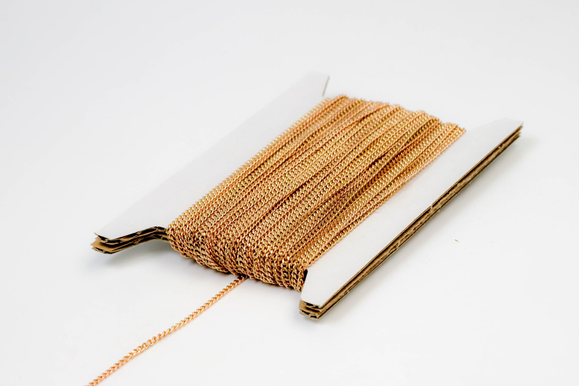 3 ft Reel Raw Brass (Copper Color) FACET Diamond Cut Tiny curb chain - 1.3mm Soldered link - FREE adequate Jump ring (5 pcs) - 1.3F