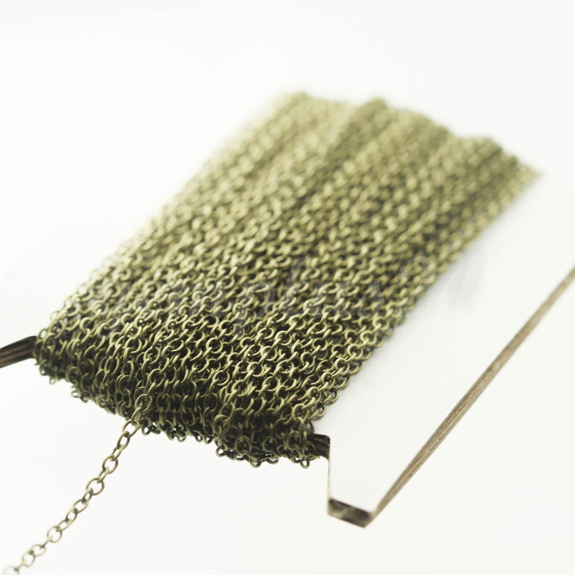 300 ft of Antiqued Brass Round Soldered Chain Dainty Delicate Cable Chain - 2x2.5mm SOLDERED link - Necklace - 225S