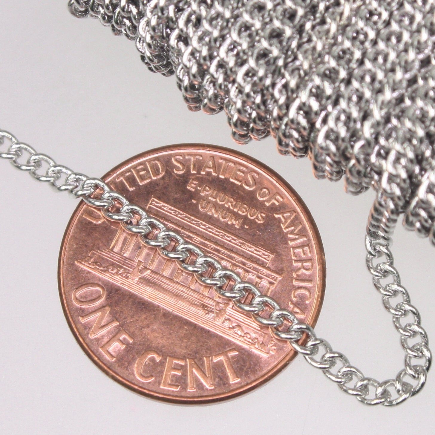 300 ft spool of Rhodium Plated SOLDERED sturdy curb chain - 2.1mm SOLDERED link - Ship from California USA