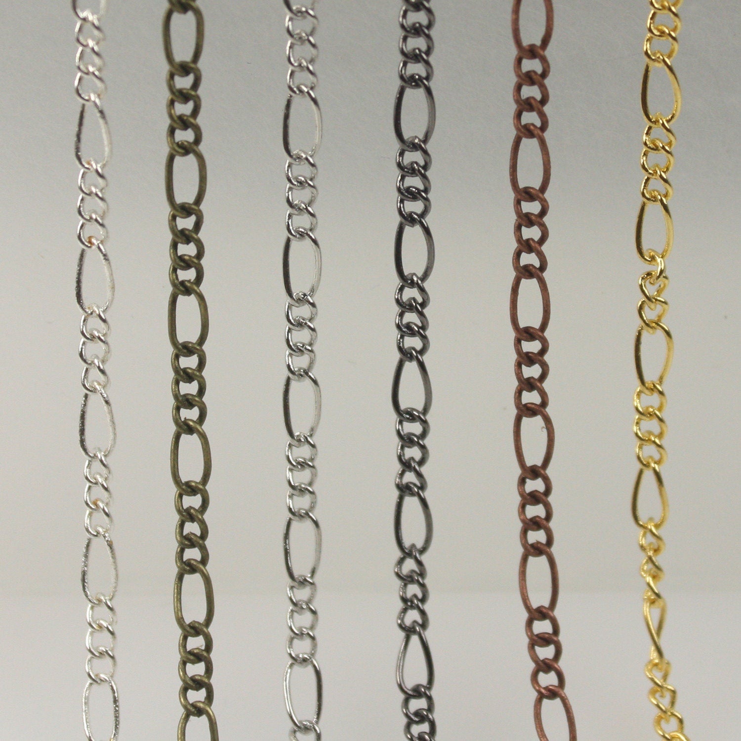 32 feet of Rhodium Plated Figaro Chain Bulk Chain - Antique Silver Sturdy SOLDERED figaro chain - 2.9mm - Wholesale - 2.9FIGARO