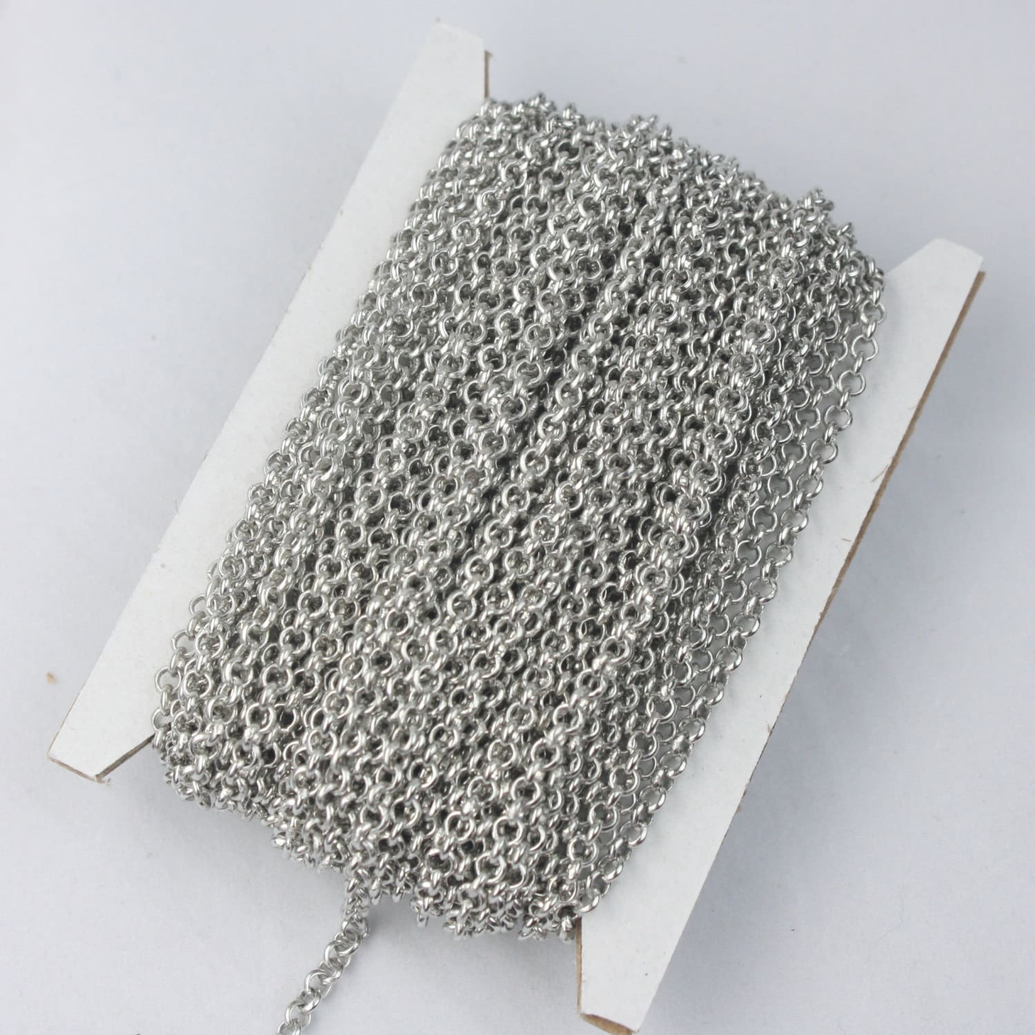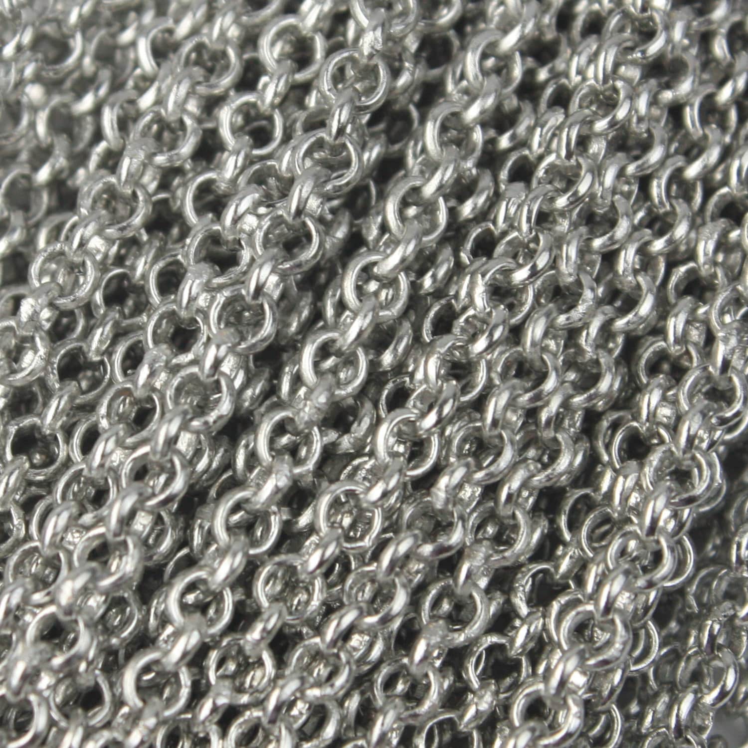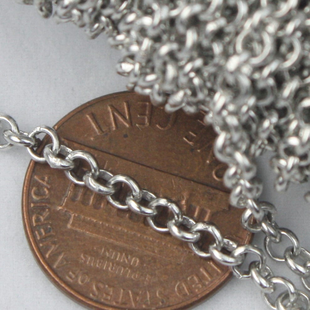 New SPECIAL 32 ft of Rhodium Plated SOLDERED Rolo Chain - 3.1mm Soldered Links - Ship from California USA