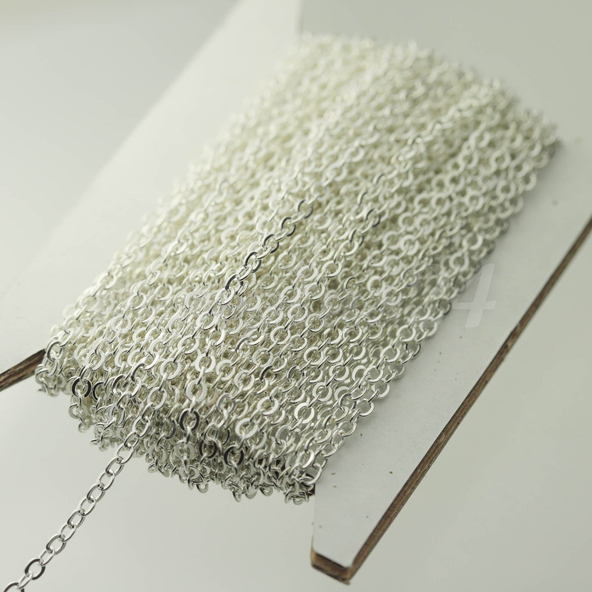 32 feet of Sterling Silver Plated Flat Cable Chain 3x3mm Solder Silver Cable Chain - Ship from California USA