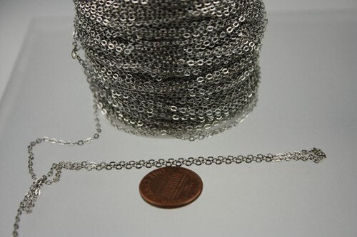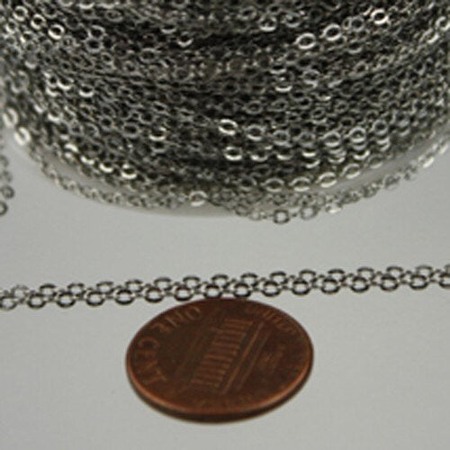 32 ft Antique Silver Chain - 2.4x1.7mm SOLDER Chain - Rhodium Plated little Oval Flat Soldered Cable Chain - Bulk Wholesale Chain - 2417F