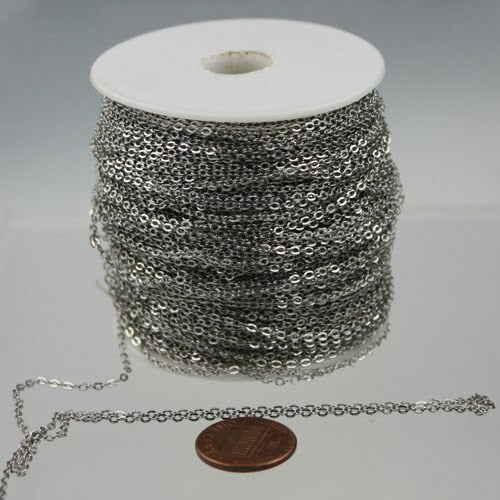 32 ft spool of Antique Silver finished brass little Oval Flat Soldered Cable Chain 2.4x1.7mm