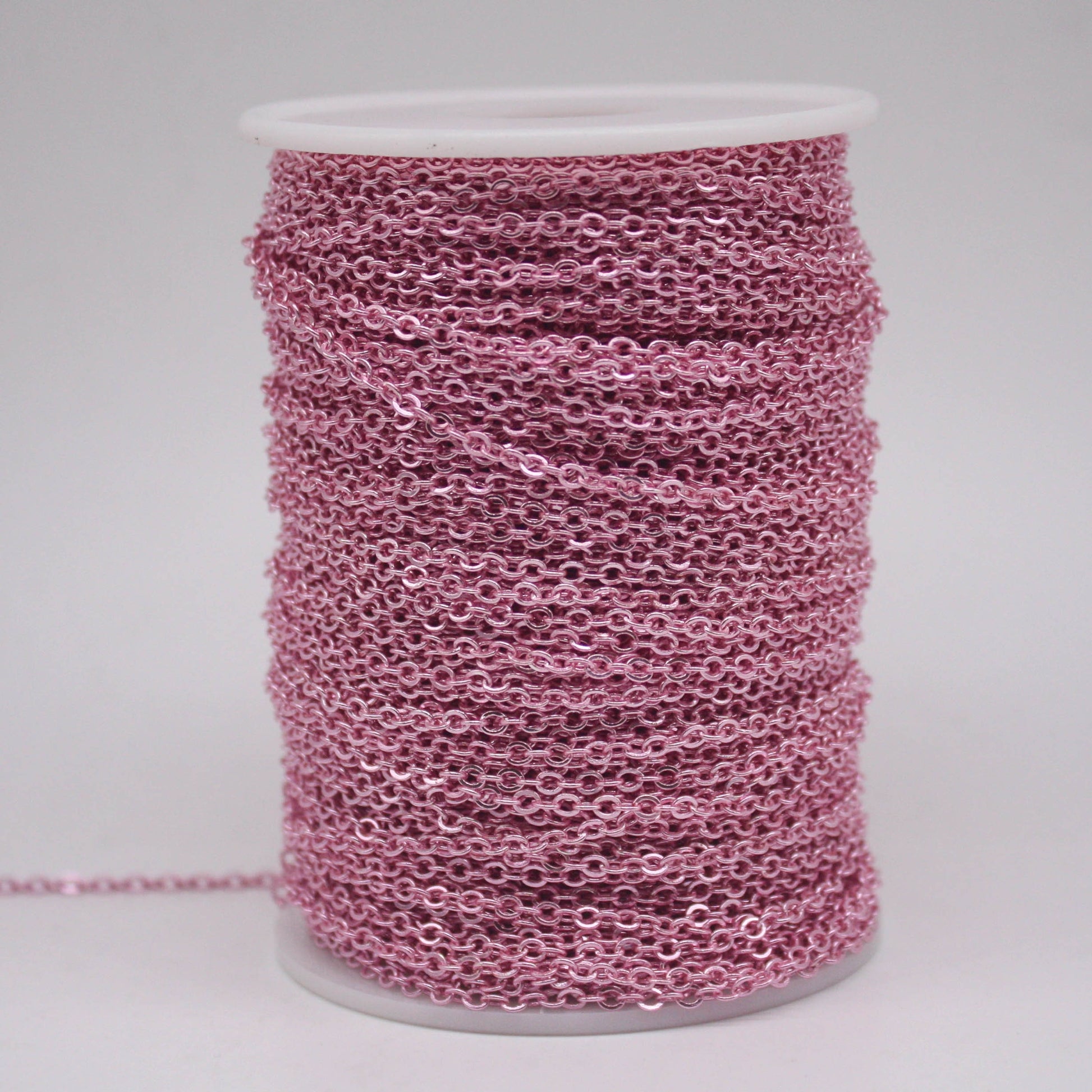 32 Ft Non Tarnish Flat Cable Chain Bulk - Pink Copper Plated Flat Cable Chain - 3.4x2.8mm SOLDERED Link - Anti Tarnish Free - AT3428