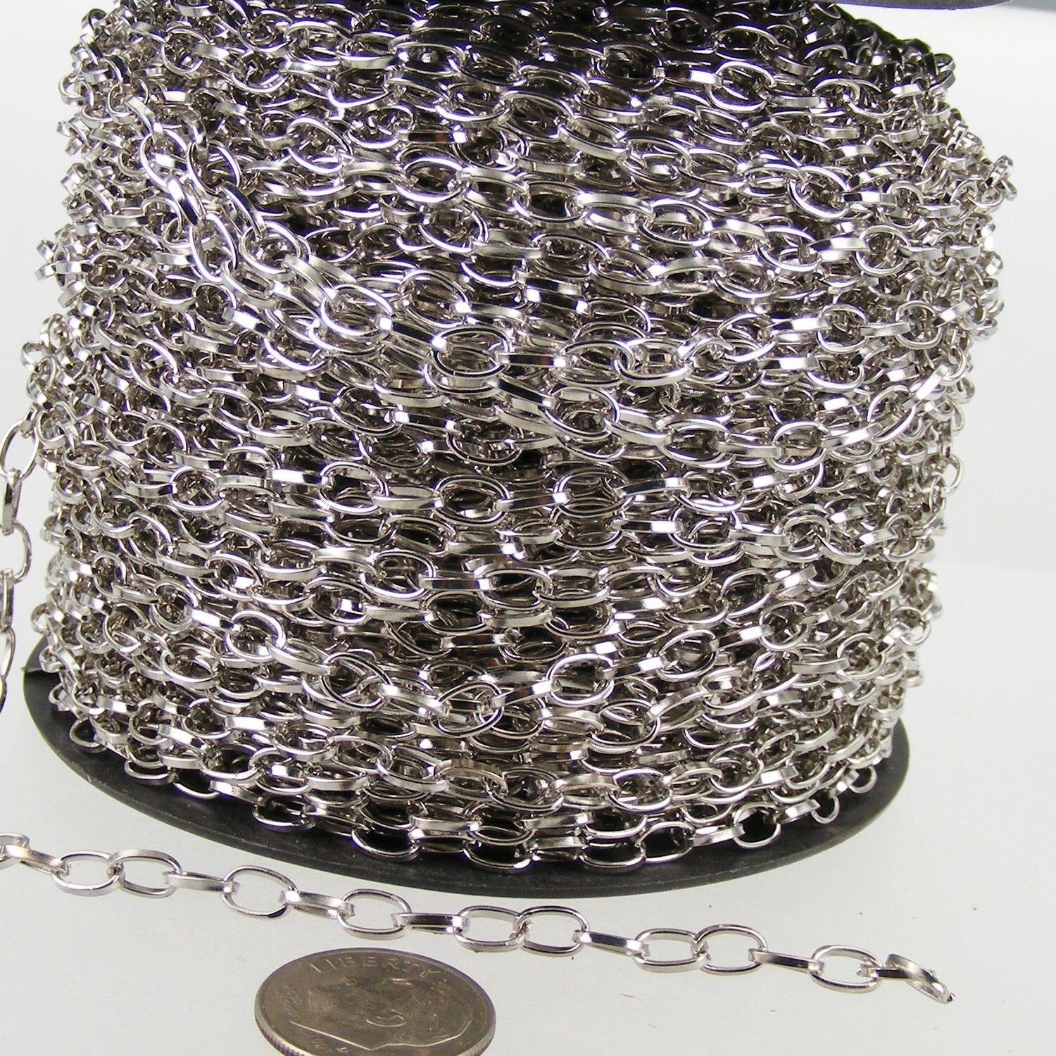 32 ft. of Rhodium Plated Drawn Cable Chain - 6.3x3.5mm Unsoldered Link - 6335DR