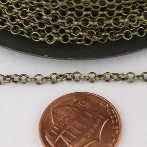 32 ft of Antiqued Brass finished Rolo Cable Chain 2.5mm - Unsoldered Links
