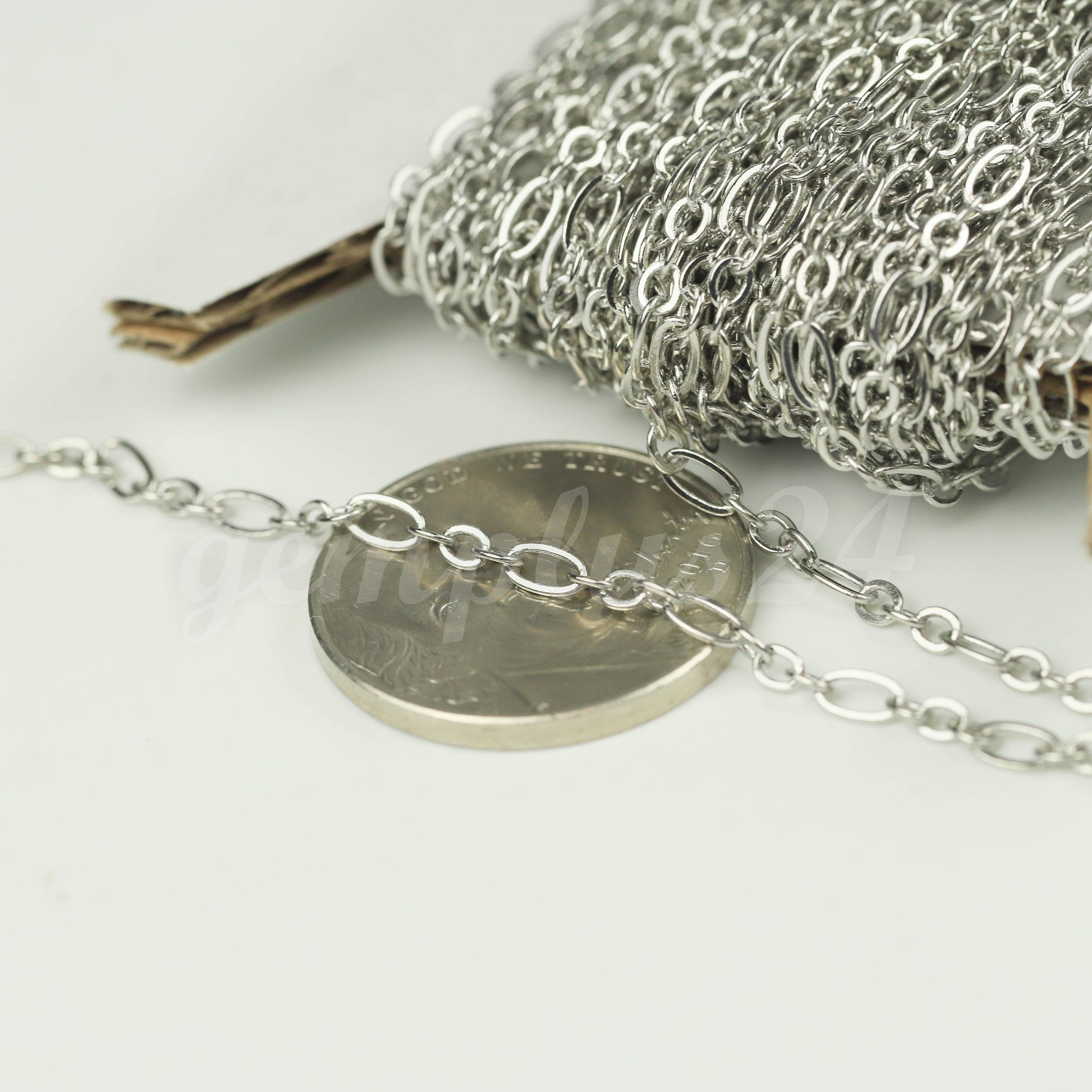 32 ft Rhodium Plated Bulk Chain, Long and Short (Small 3 and 1) SOLDERED Necklace Chain - 4.5x2.5mm 2.9x2.6mm Soldered - 317LS31